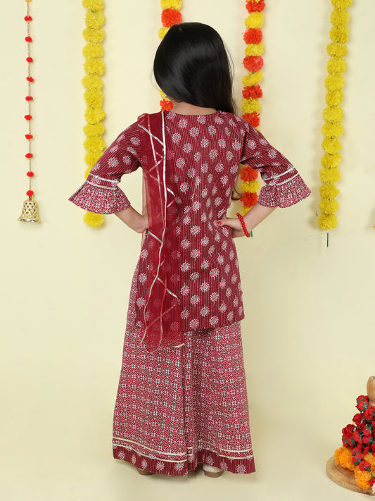All Over Print Cotton Kurta Sharara Set- Maroon