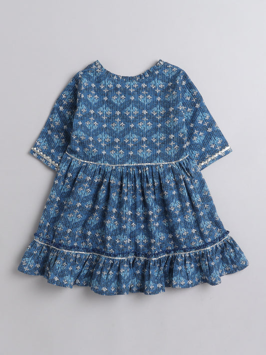 All Over Printed 3/4th Sleeves Dress with Jacket- Blue