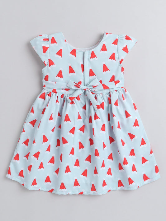 All Over Printed Half Sleeves Fit & Flare Dress - Red
