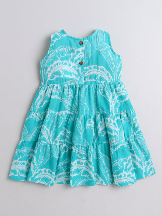 All Over Printed Lace Embellished Sleeveless Cotton Dress- Turquoise