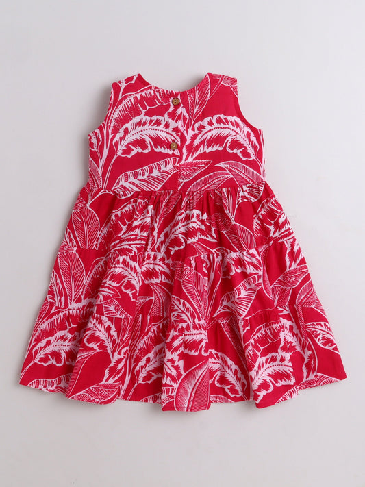 All Over Printed Lace Embellished Dress Sleeveless Cotton- Fuchsia