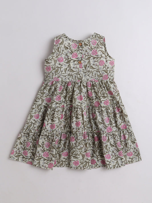 All Over Printed Lace Embellished Sleeveless Cotton Dress -Grey