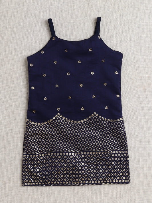 Sleeveless Embellished Kurta Set with Lace- Navy Blue