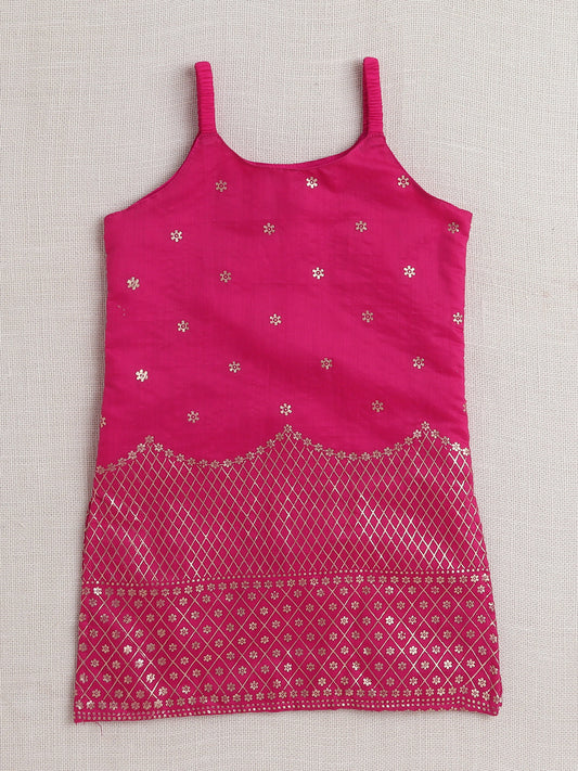 Sleeveless Ethnic Motif Printed & Lace Embellished Kurta & Palazzo Set - Fuchsia Pink