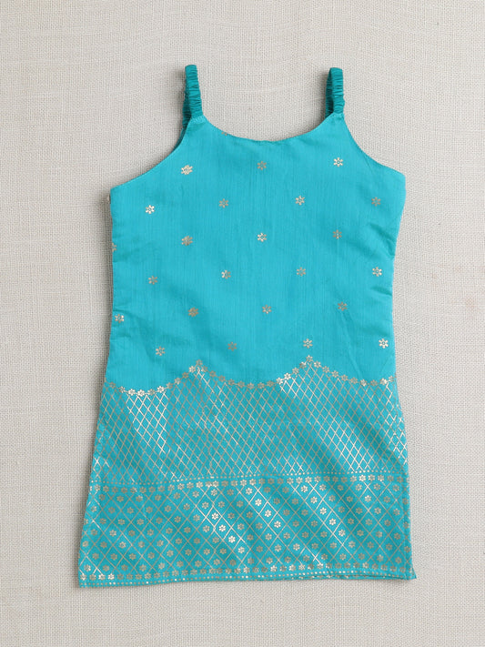 Sleeveless Embellished Kurta Set with Lace- Teal