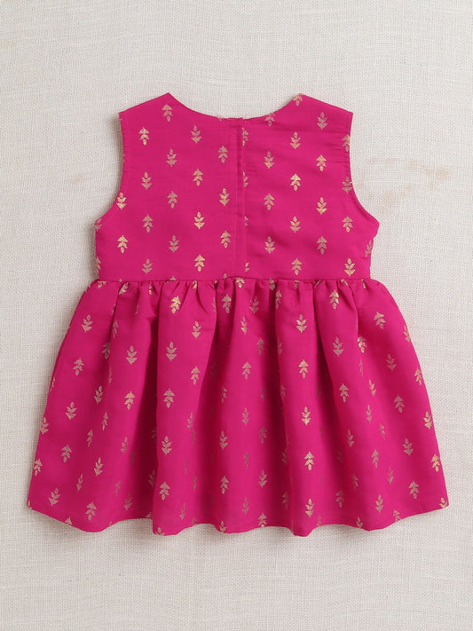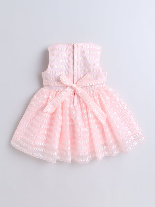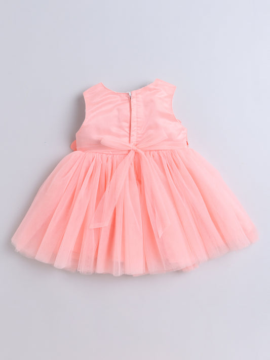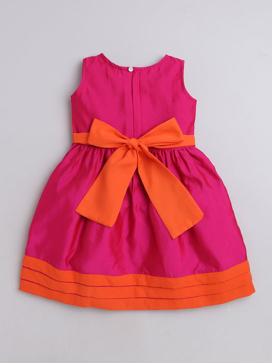 Sleeveless Bow Embelished Fit & Flare Party Dress For Girls - Fuchsia