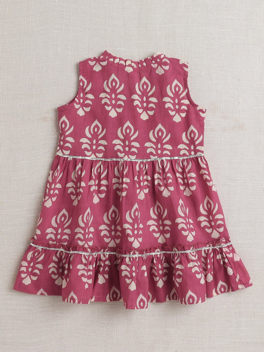 Sleeveless Contrast Hem Fit & Flare Party Dress For Girls - Magenta