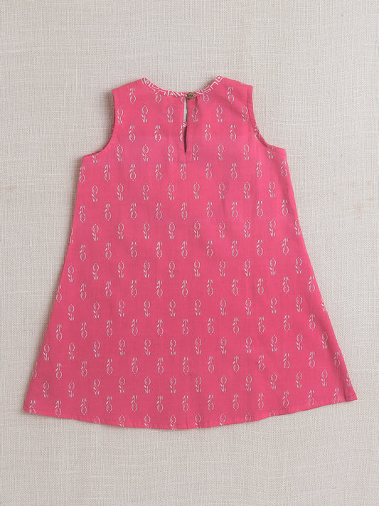 Sleeveless Floral Applique Detailed & Pearls Embellished Dress - Pink