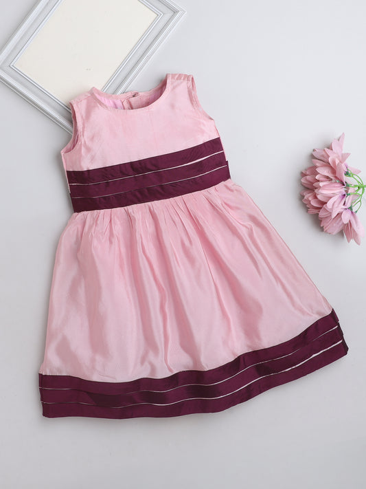 Sleeveless Contrast Hem Fit & Flare Party Dress For Girls Onion Pink