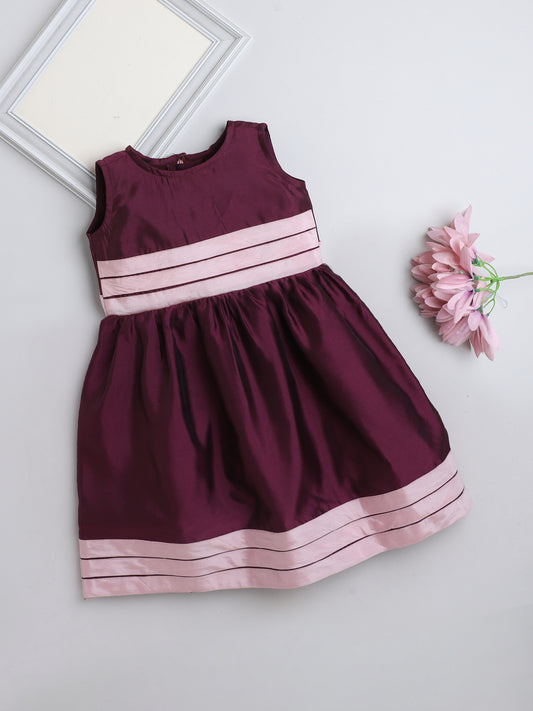 Sleeveless Cotrast Hem Fit & Flare Party Dress For Girls Fuchsia