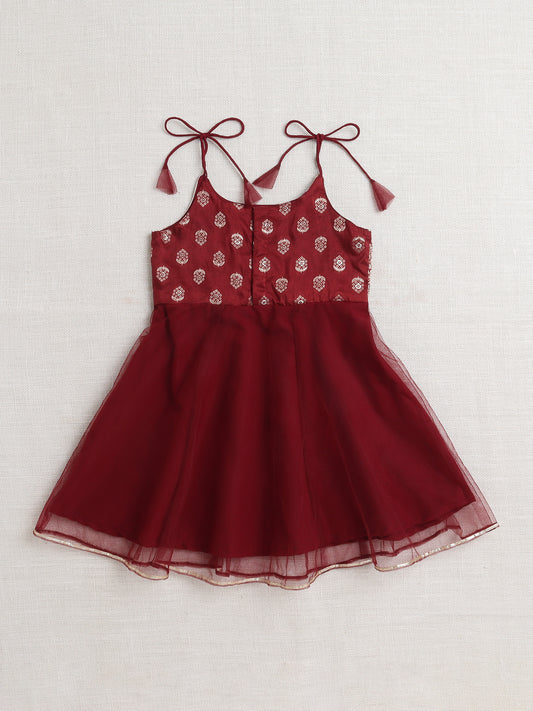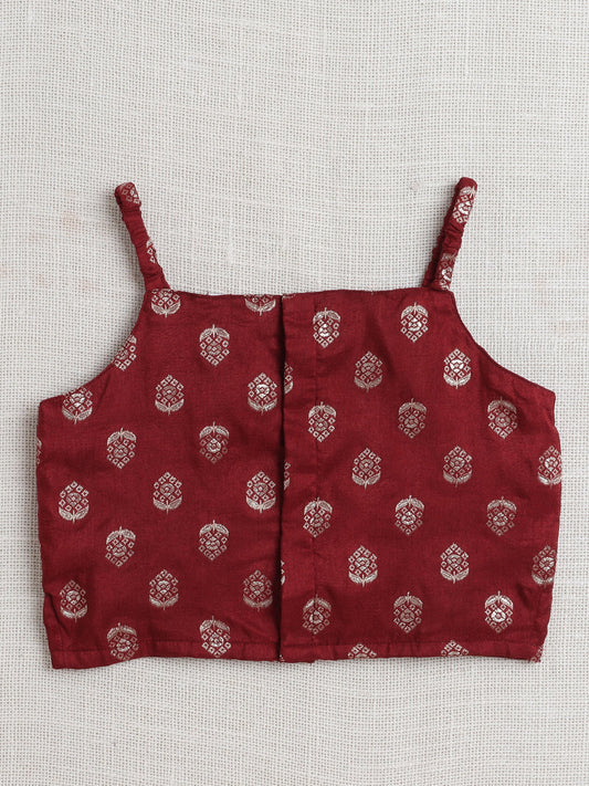 Sleeveless Brocade Printed Kurta Set-Maroon