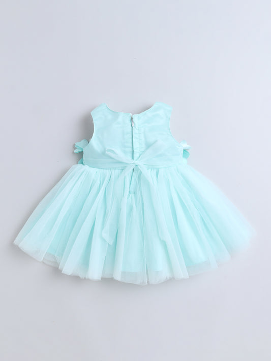 Sleeveless Bow Embellished Fit & Flare Party Dress For Girls -Teal Blue