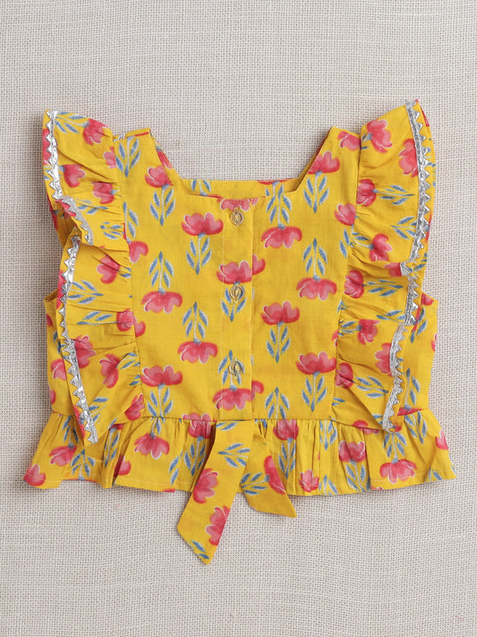 Sleeveless Floral Print Lehenga Choli Set - Yellow