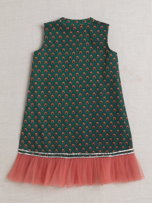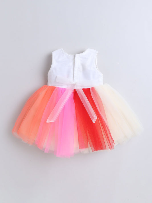 Sleeveless Floral Applique Detailed Colour Blocked Net Dress - Multi Colour