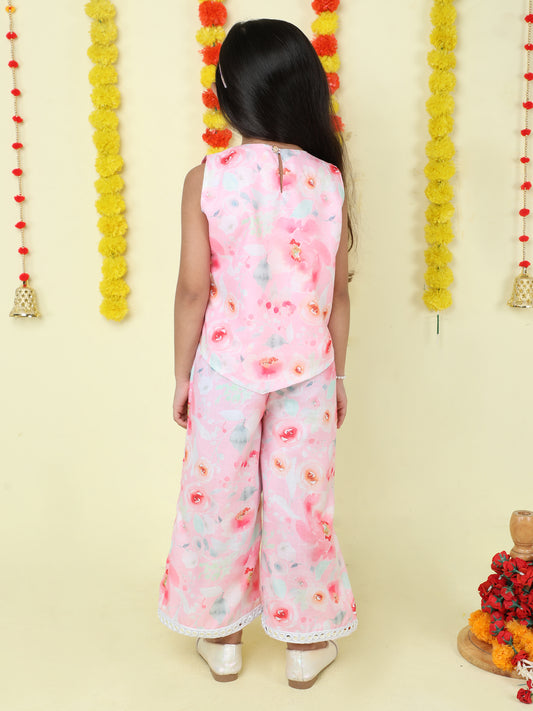 Sleeveless Floral Print Coordinating Top and Pant Set- Onion Pink