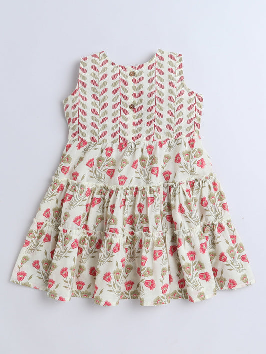Sleeveless Floral Printed Dress - Off White