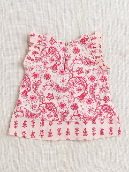 Sleeveless Floral Printed & Gota Lace Embellished Gathered Top With Afghani Pants - Pink