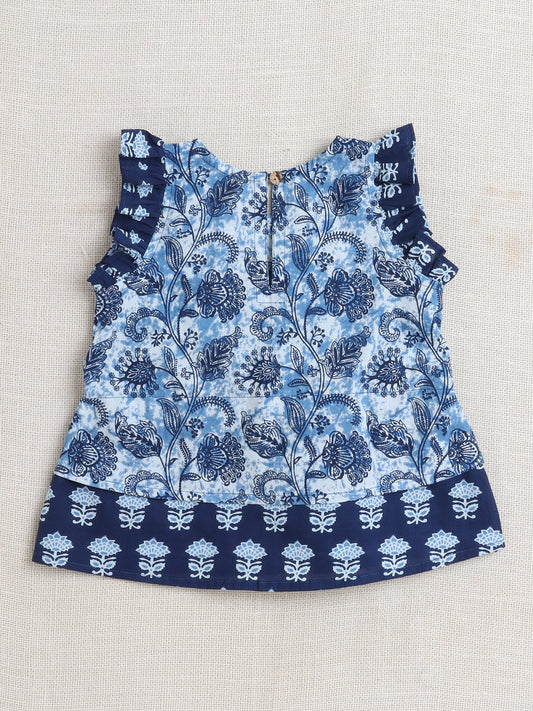 Sleeveless Floral Printed Coordinating Set - Blue