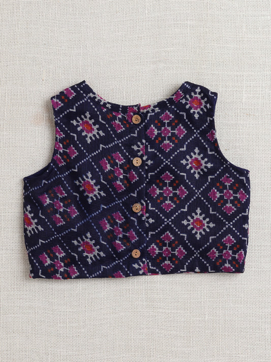 Sleeveless Floral Printed Gota Lace Embellished Top & Pant Set Co-Ords Set-Navy Blue