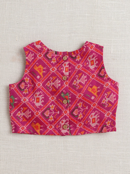 Sleeveless Floral Printed Gota Lace Embellished Top & Pant Set Co-Ords Set-Fuchsia
