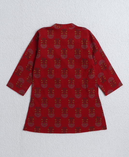 The Magic Wand Cambric Cotton Full Sleeves Cow Printed Attached Jacket Kurta and Pyjama Set- Red