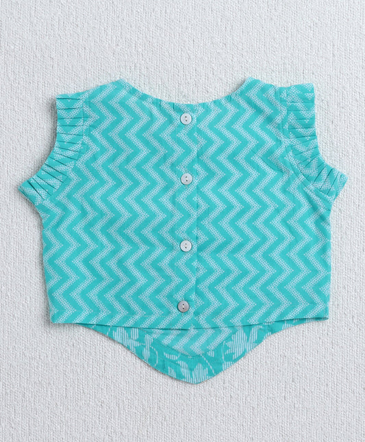 The Magic Wand Cambric Cotton Flutter Sleeves Zig Zag Printed Top and Bottom Co-ord Set - Blue
