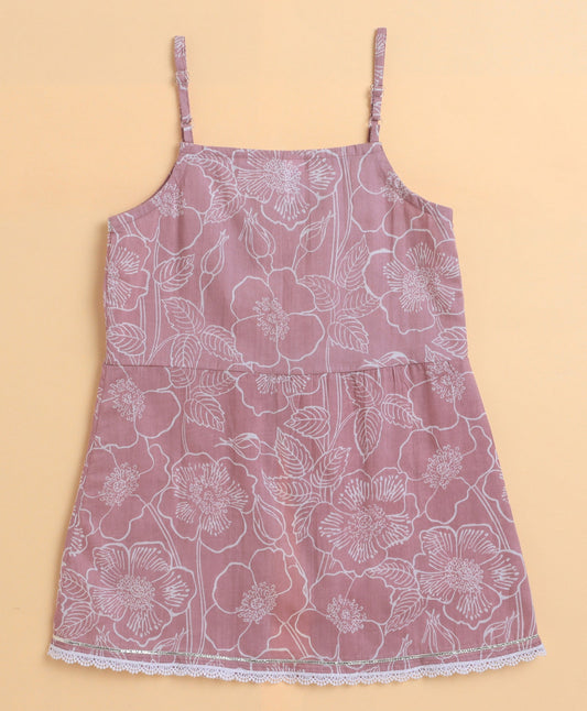 The Magic Wand Cambric Cotton Incut Neck Floral Printed Foil Gota Lace Top and Dhoti Set-Pink