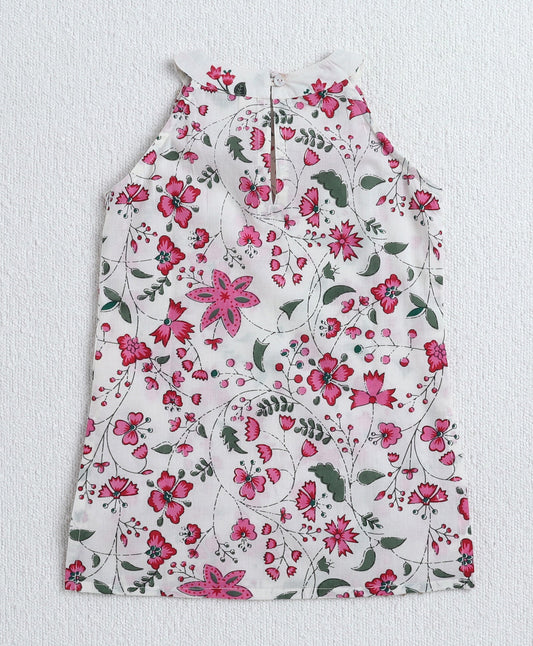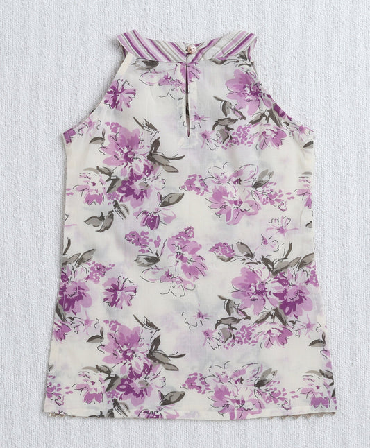 The Magic Wand Cambric Cotton Shoulder Tie Ups Floral Printed Tent Top and Dhoti Set-Beige