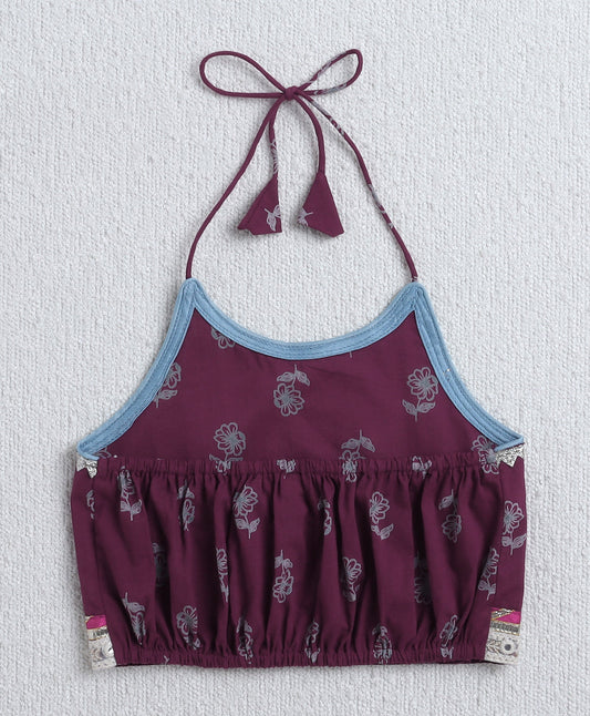 The Magic Wand Cambric Cotton Halter Neck AII Over Printed Choli and Lehenga with Dupatta Set- Wine