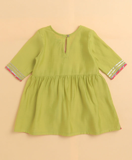 The Magic Wand Cambric Cotton Three Fourth Sleeves Solid Gota Lace Kurta and Bottom Set- Green
