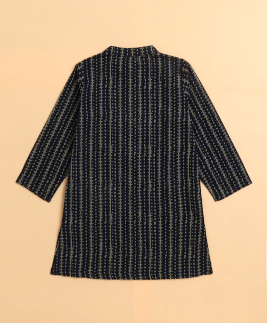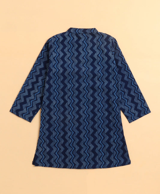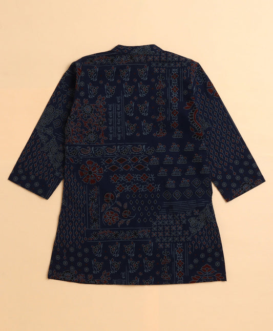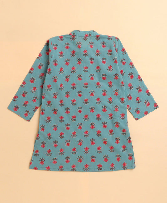 The Magic Wand Cambric Cotton woven Full Sleeves Printed Short Kurta - Teal Blue