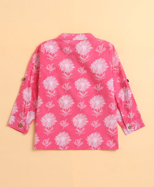 The Magic Wand Cambric Cotton woven Full Sleeves Floral Printed Short Kurta - Pink