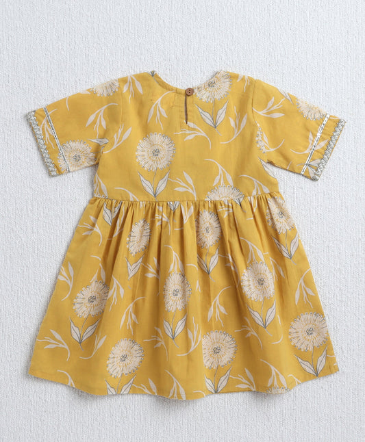 The Magic Wand Cambric Cotton Half Sleeves Hand Block Printed Gota Lace Kurta and Sharara with Dupatta Set - Mustard