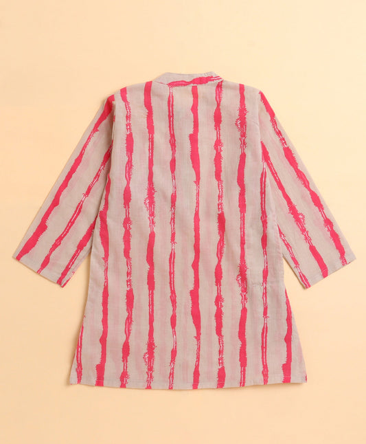The Magic Wand Cambric Cotton woven Full Sleeves Printed Kurta Pyjama Set - Pink