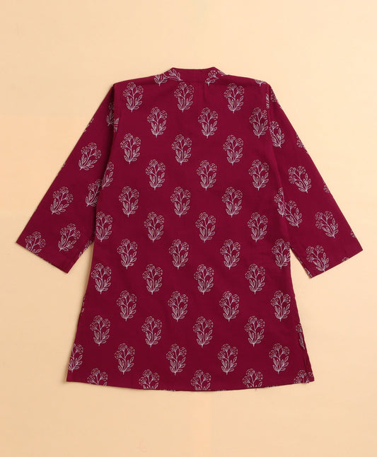 The Magic Wand Cambric Cotton woven Full Sleeves Printed Kurta Pyjama Set - Maroon
