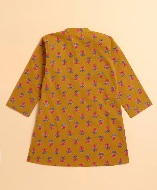 The Magic Wand Cambric Cotton woven Full Sleeves Printed Kurta Pyjama Set - Mustard