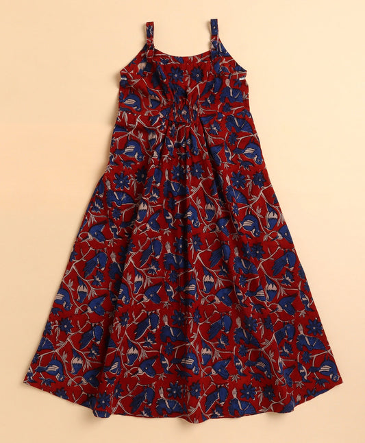 The Magic Wand Cotton woven Cambric Hand Block Printed Spagetti Long Dress with Dupatta- Maroon