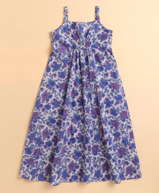 The Magic Wand Cotton woven Cambric Hand Block Printed Spagetti Long Dress with Dupatta- Blue