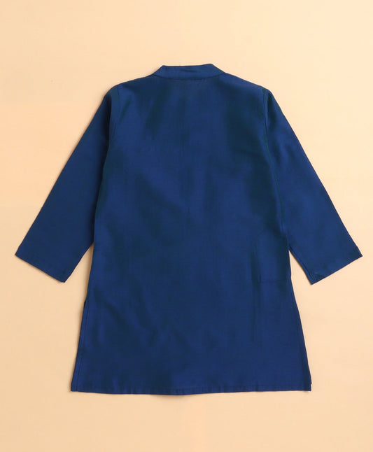 The Magic Wand Cotton woven Blend Full Sleeves Kurta Pyjama With Modi Jacket -Navy Blue