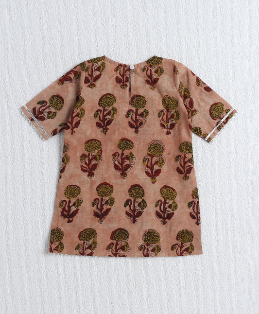 The Magic Wand Cotton Woven Frill Sleeves Floral Printed Top and Bottom Co Ordinating Set- Rust