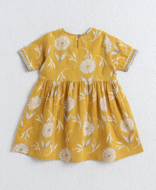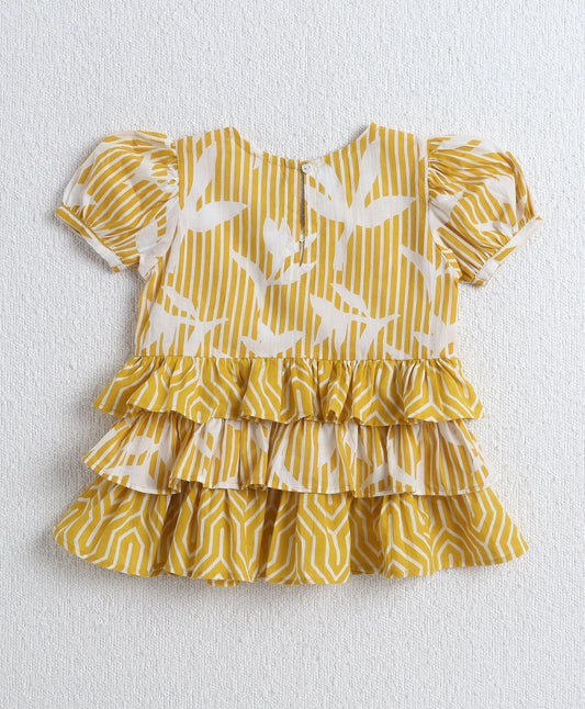 The Magic Wand Cotton Woven Puff Sleeves Floral Printed Top & Bottom Set - Mustard