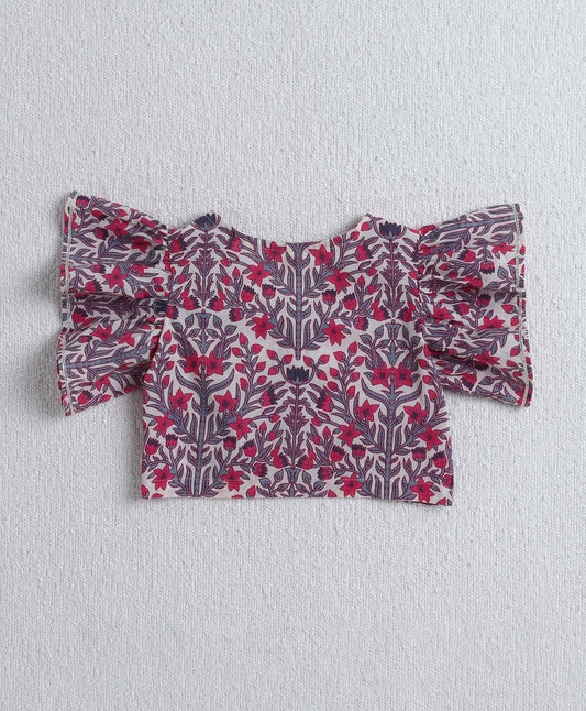The Magic Wand Cotton Woven Ruffle Sleeves Floral Printed Choli and Lehenga Set with Dupatta - Fuchsia