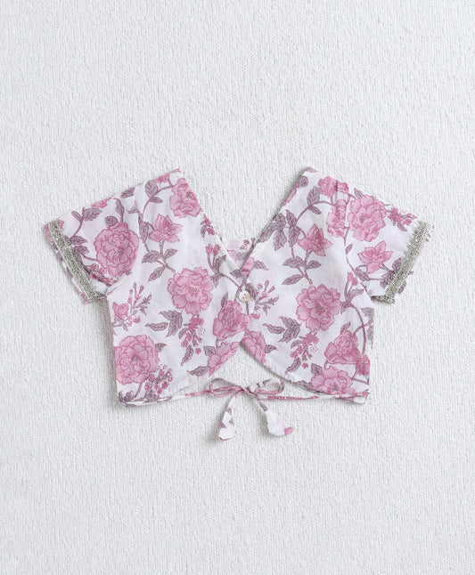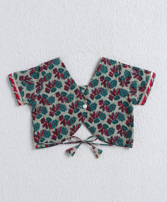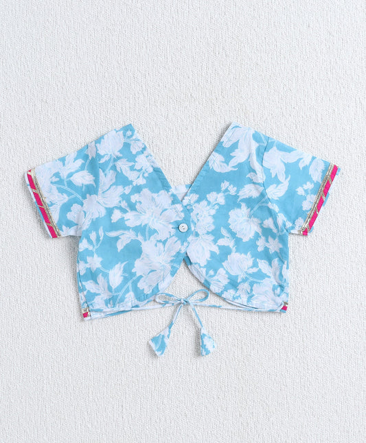 The Magic Wand Cotton Woven Half Sleeves Floral Printed Choli & Lehenga Set- Blue