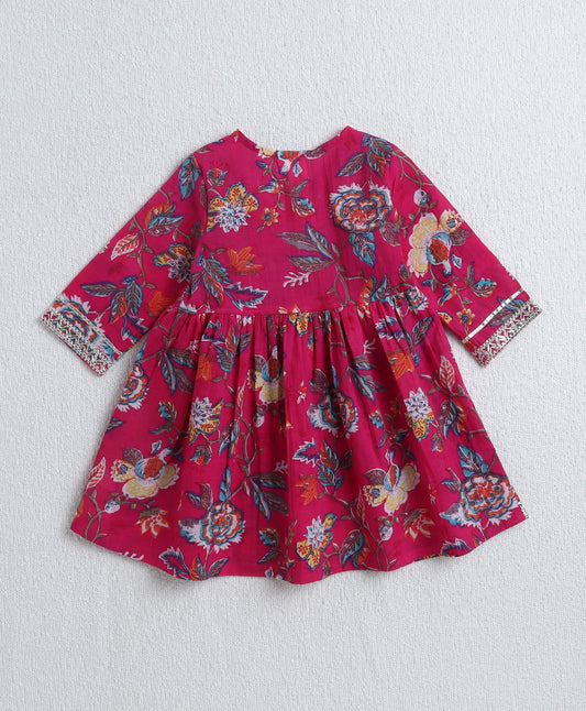The Magic Wand Cotton Woven Three Fourth Sleeves Floral Printed Kurta & Sharara Set- Fuchsia