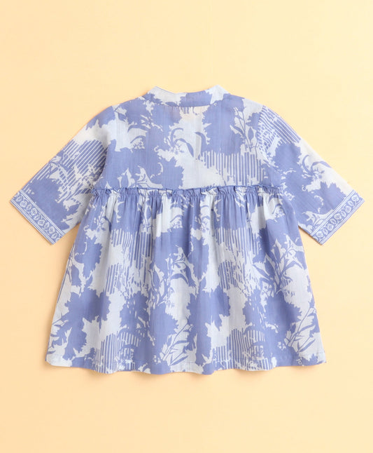 The Magic Wand Cotton Woven Three Fourth Sleeves Floral Printed Top and Bottom co ordinating Set- Blue