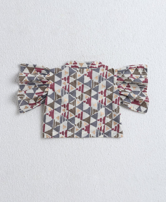 The Magic Wand Cotton Woven Ruffle Sleeves Printed Top and Pant with Patch Pockets- Off White