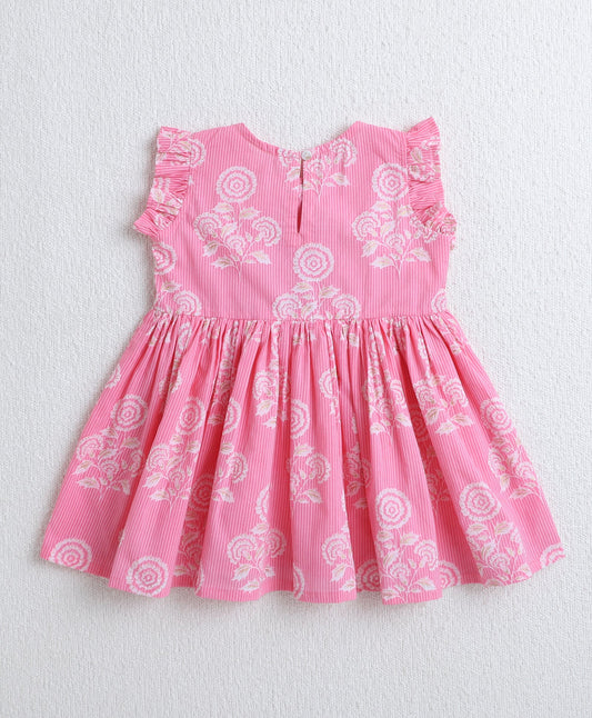 The Magic Wand Cotton Woven Ruffle Sleeves Floral Printed Top and Pant with Patch Pocket Set- Pink