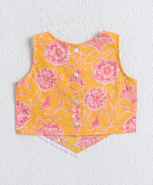 The Magic Wand Cotton Woven Sleveless Floral printed Lace Detailed Choli & Lehenga Set with Dupatta- Yellow
