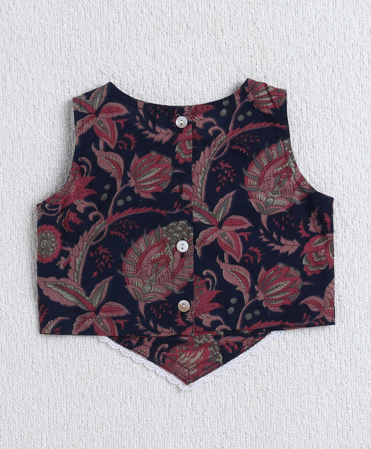 The Magic Wand Cotton Woven Sleeveless Floral Printed Top and Pant Set- Navy Blue