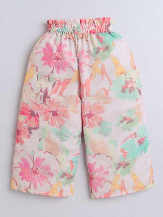 The Magic Wand Floral Printed Full Length Palazzo With Lace Bow Peach